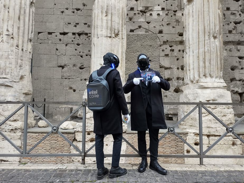 Two actors in futuristic outfits attracted the attention of passersby with a puzzle, challenging them to solve it while explaining the extraordinary ability of artificial intelligence to do so in record time. This provocation sparked strong interest and healthy curiosity among the public, to whom stickers and explanatory flyers about the new processor were distributed. Within these promotional materials, a QR code directed users directly to the product’s online page, amplifying interest and facilitating access to detailed information.